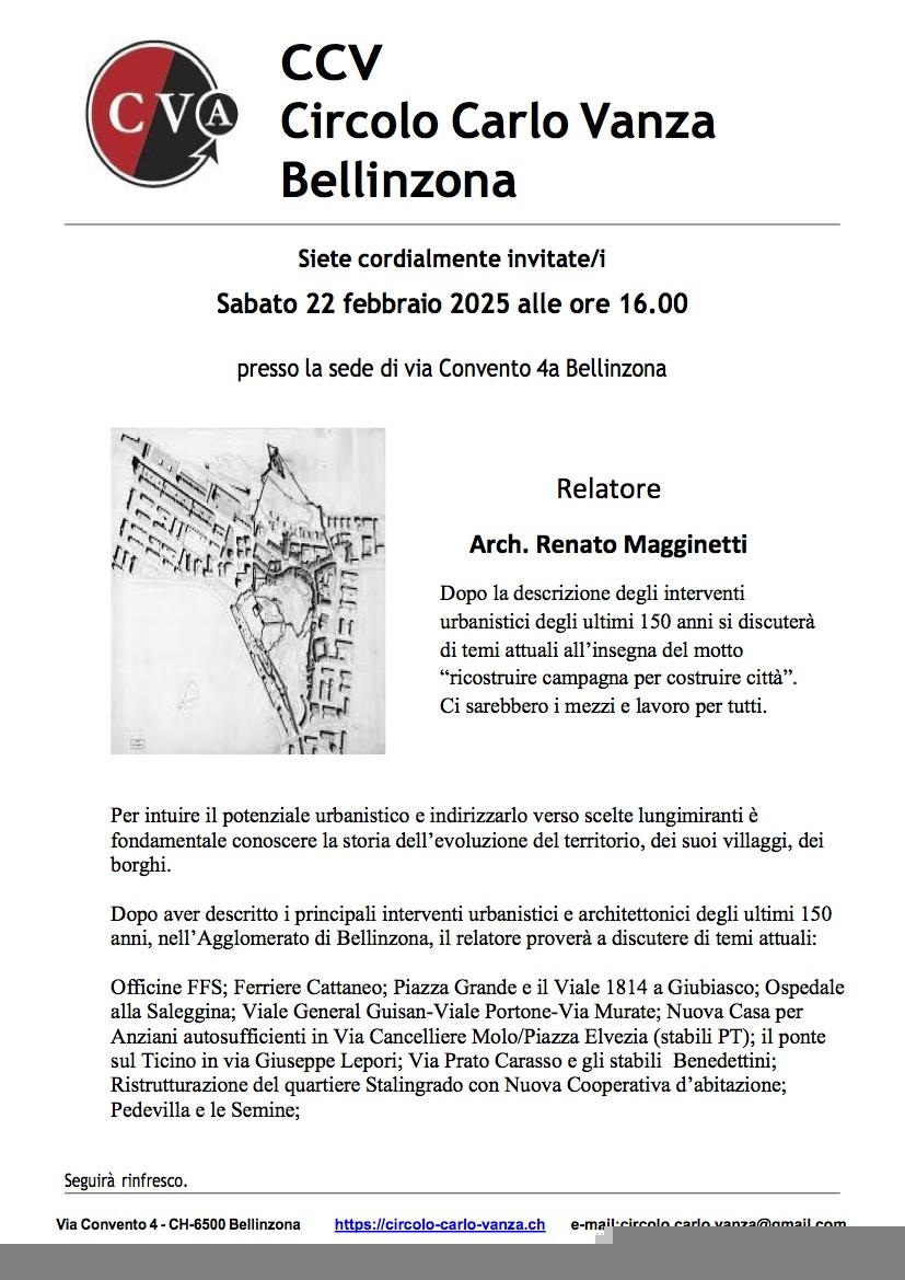 22 FEBBRAIO BELLINZONA – Presentazione Carlo Vanza “Ricostruire campagna per costruire città” Posted on 18 Febbraio 202518 Febbraio 2025 by molino Share this post: