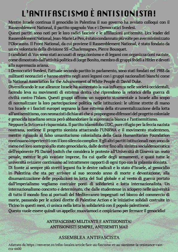 GIOVEDI 17 LUGLIO BELLINZONA – TAZ ANTIFASCISTA Posted on 17 Luglio 202517 Luglio 2025 by molino Share this post: