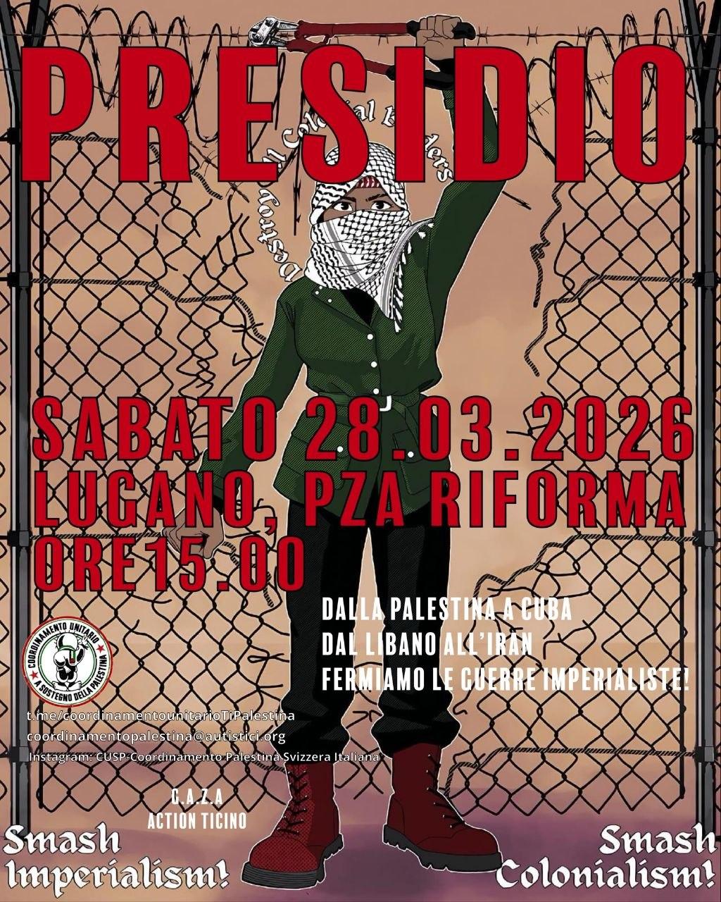 Sabato 28 marzo, presidio in Piazza Riforma a Lugano, dalle 15.00